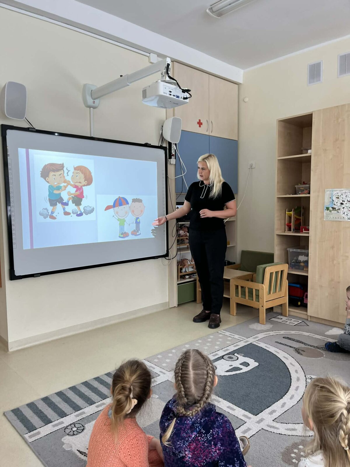 Ugdytiniai mokėsi atpažinti netinkamus veiksmus, kalbėjosi apie tai, kaip elgtis draugiškai, kaip spręsti nesutarimus ir kreiptis pagalbos. Taip pat prisiminėme ir įtvirtinome mandagumo žodžius – „prašau“, „ačiū“, „atsiprašau“, „viso gero“ – bei aptarėme, kodėl jie svarbūs bendraujant su kitais.