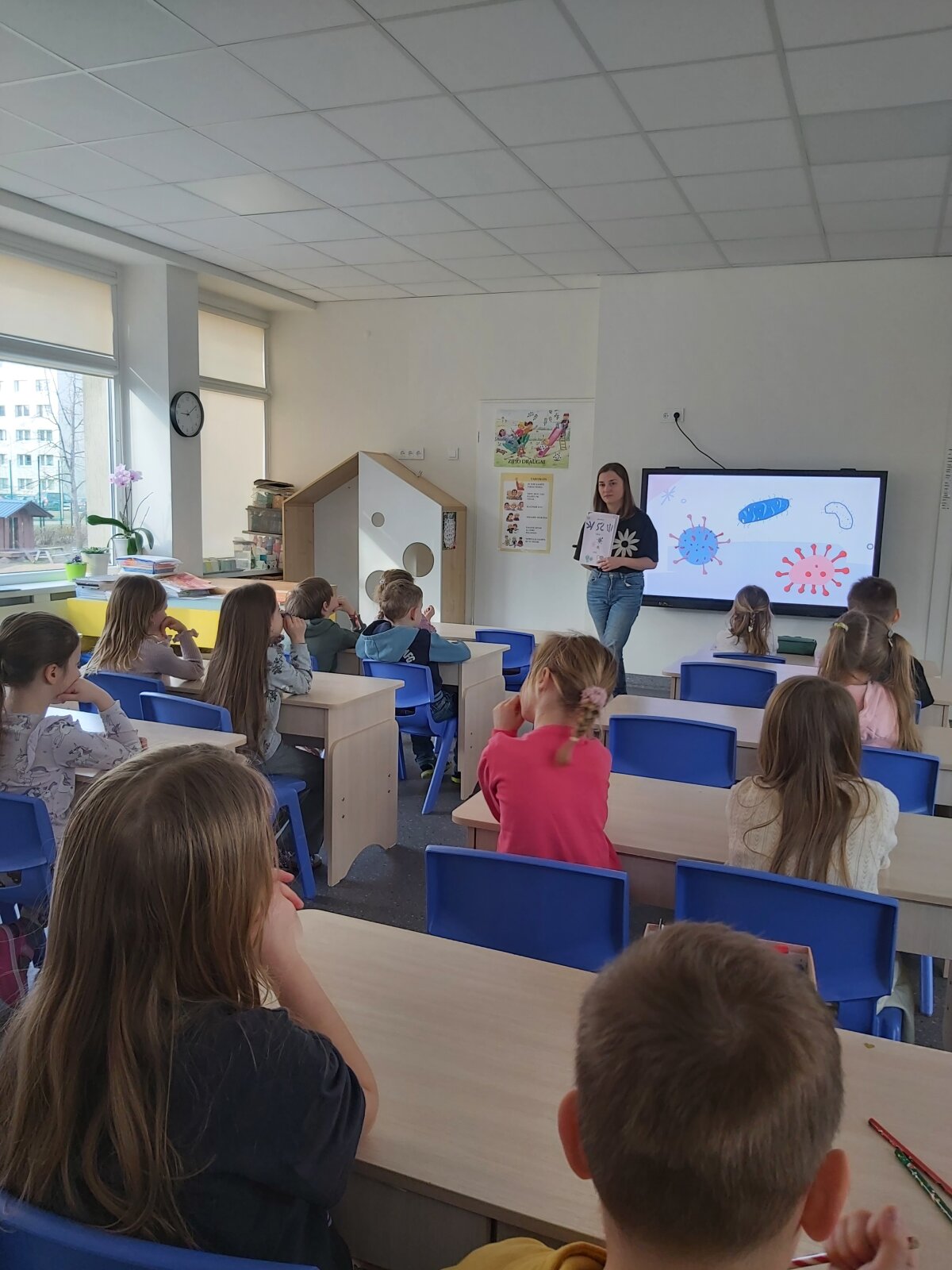 Kovo mėnuo lopšelyje-darželyje skirtas vaikų žinioms apie sveikatą. Vaikai per edukacines veiklas sužinojo apie žarnyno infekcijas, aiškinosi nuo ko galima susirgti, ko nereiktų daryti ir priešingai ką reikia daryti, kad išvengti ligų. Vaikai tyrinėjo, kaip mikrobai apsigyvena ant rankų ir prisiminė kaip reikia tinkamai plautis rankas. Išmėgino mikrobų maišelį ir ultravioletinės spalvos žibintuvėlį.