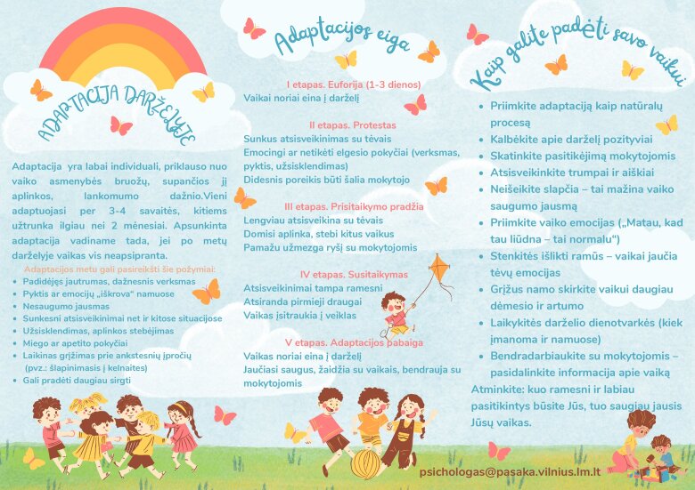 Mieli tėveliai, Jūsų vaikas pradeda lankyti darželį. Kol jis apsipras su nauja... -