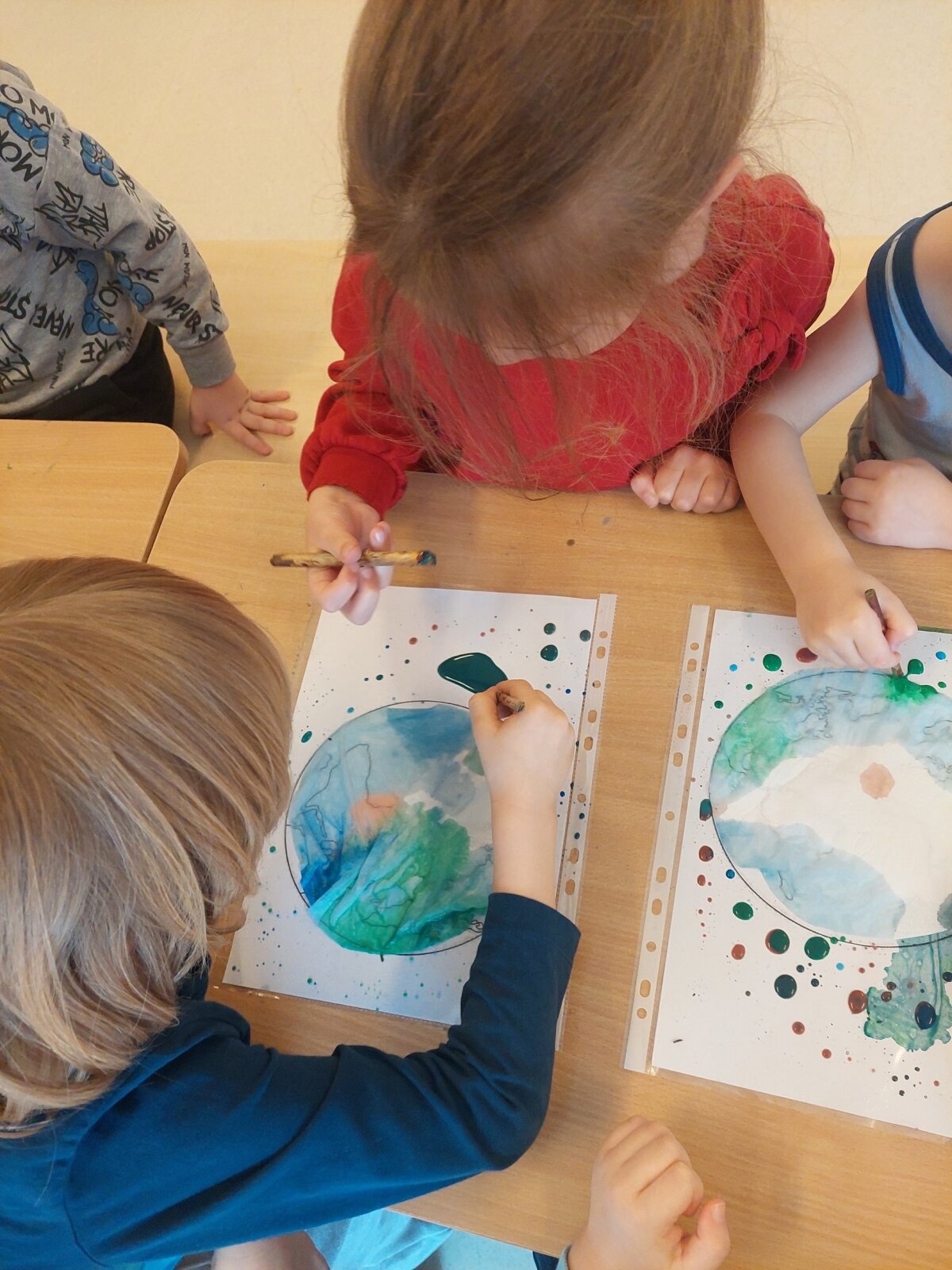 Antrojoje erdvėje vaikai spalvino Žemės trafaretą spalvotais lašeliais. Užduotis reikalavo susikaupimo ir kantrybės, nes paviršius buvo padengtas aliejumi, todėl spalvoti lašeliai judėjo lėtai ir sunkiau pasiskirstė. Trečiojoje erdvėje buvo nagrinėjamos vaivorykštės spalvos, o veikla su spalvotais burbulais skatino džiaugsmą ir kūrybinę saviraišką. Ketvirtojoje erdvėje vaikai atliko eksperimentą, tyrinėdami, kurie objektai skęsta. Jie lygino iš folijos pagamintus rutuliukus, suformuotus ore ir vandenyje, ir priėjo išvadą, kad ore suformuoti rutuliukai yra lengvesni. Penktojoje erdvėje vaikus pasitiko sensorinis smėlis, kuriame buvo paslėpti paveikslėliai. Vaikai aktyviai ieškojo pasislėpusių gyvūnų, patirdami atradimo džiaugsmą. Šeštojoje erdvėje buvo tyrinėjamos vandens savybės. Papurškus vandeniu ant popierinių gėlių, jos „pražysdavo“, taip simboliškai atskleidžiant vandens svarbą gyvajai gamtai. Septintojoje erdvėje vaikai stebėjo, kaip iš popieriaus susukti „drugeliai“, veikiami vandens, išsiskleidžia ir padidėja, sukeldami daug teigiamų emocijų.
