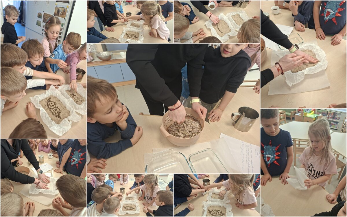 Vasario 5 d. mūsų darželyje sklandė ypatinga šiluma ir jaukumas – vaikai ir pedagogai, sekdami senolių tradicijų, kepė šv. Agotos duonelę. Mažos rankelės su meile minkė tešlą, formavo kepaliukus, o krosnyje kepdama duona skleidė nepakartojamą kvapą, užliejusį visą darželį. Nuo pat ryto visa bendruomenė buvo draugiškai įtraukta į šią šventinę veiklą – visi, nuo mažiausiųjų iki didžiausiųjų, dalijosi džiaugsmu ir kūrybingumu. Vaikai sužinojo apie šios tradicijos prasmę. Diena priminė, kaip svarbu puoselėti lietuviškas tradicijas, perduoti jas iš kartos į kartą ir kurti jaukius, širdžiai mielus prisiminimus.